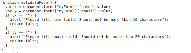 The Name field is limited to 10 characters and email is limited to 20 characters
