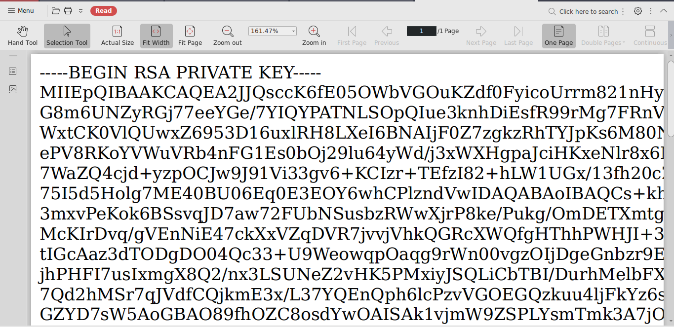 Now we can extract the /home/reader/.ssh/id_rsa like we did with /etc/passwd