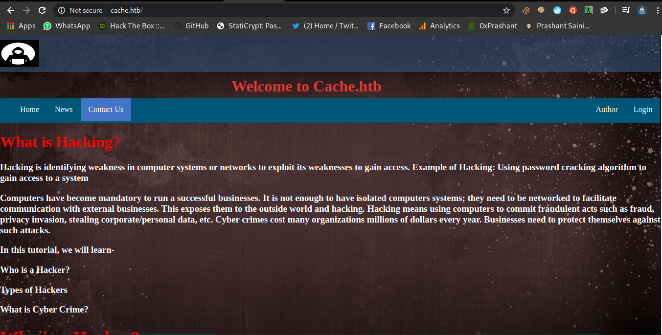 The story starts from : Using cewl to make a custom wordlist from thr page author.html , used wfuzz to find the another domain and sqli in the add_edit_event_user.php , using sqlmap to dump the table user_secure and got the credentials for the openEmr panel.Editing the file config.php and embeding php reverse shell to get initial shell as www-data.The file jquery/functionality.js contains user ash password.Memcached service is ruuning locally. Getting user luffy credentials By dumping data from memcache by Monitoring using Watchers and manually.The user luffy is in the group docker.Displaying docker images got ubuntu and Spawning a root-shell.