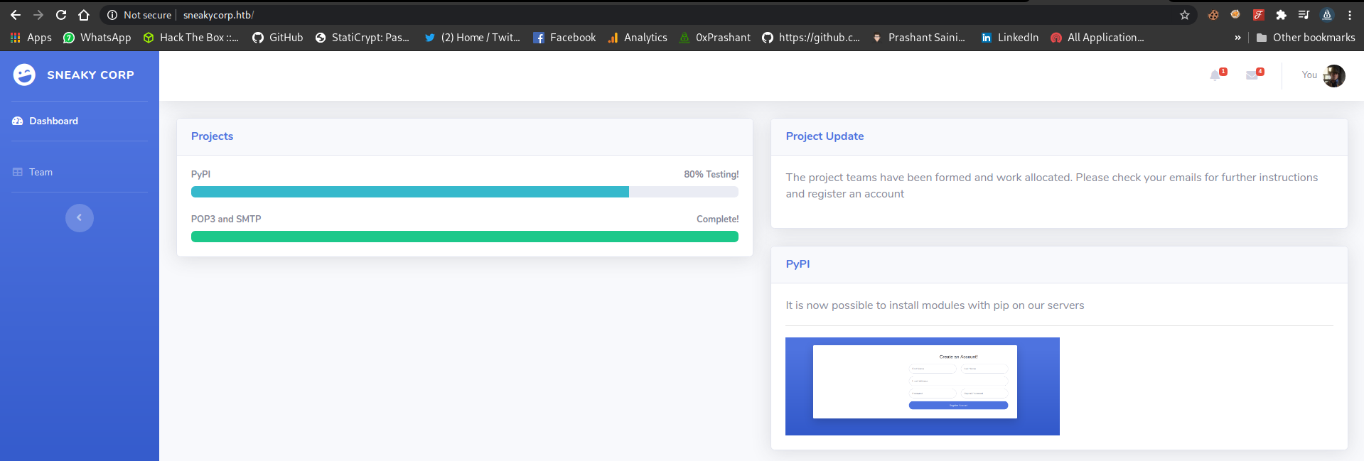 Registering sample to http://pypi.sneakycorp.htb:8080