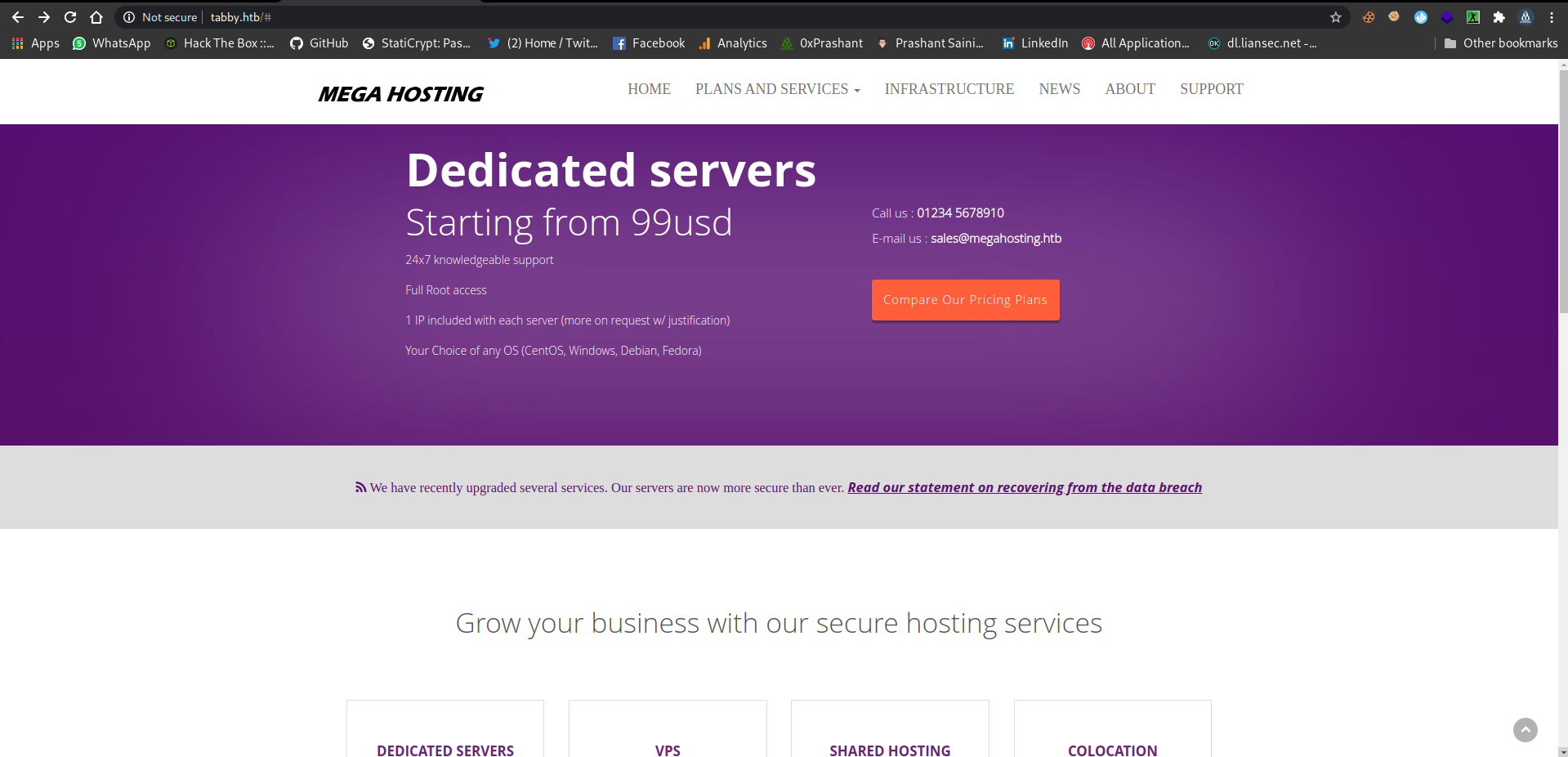 And its looking like cloud-hosting website and i checked all the tabs from the menu bar and there is a news tab clicking on it, and it take me to the another domain
